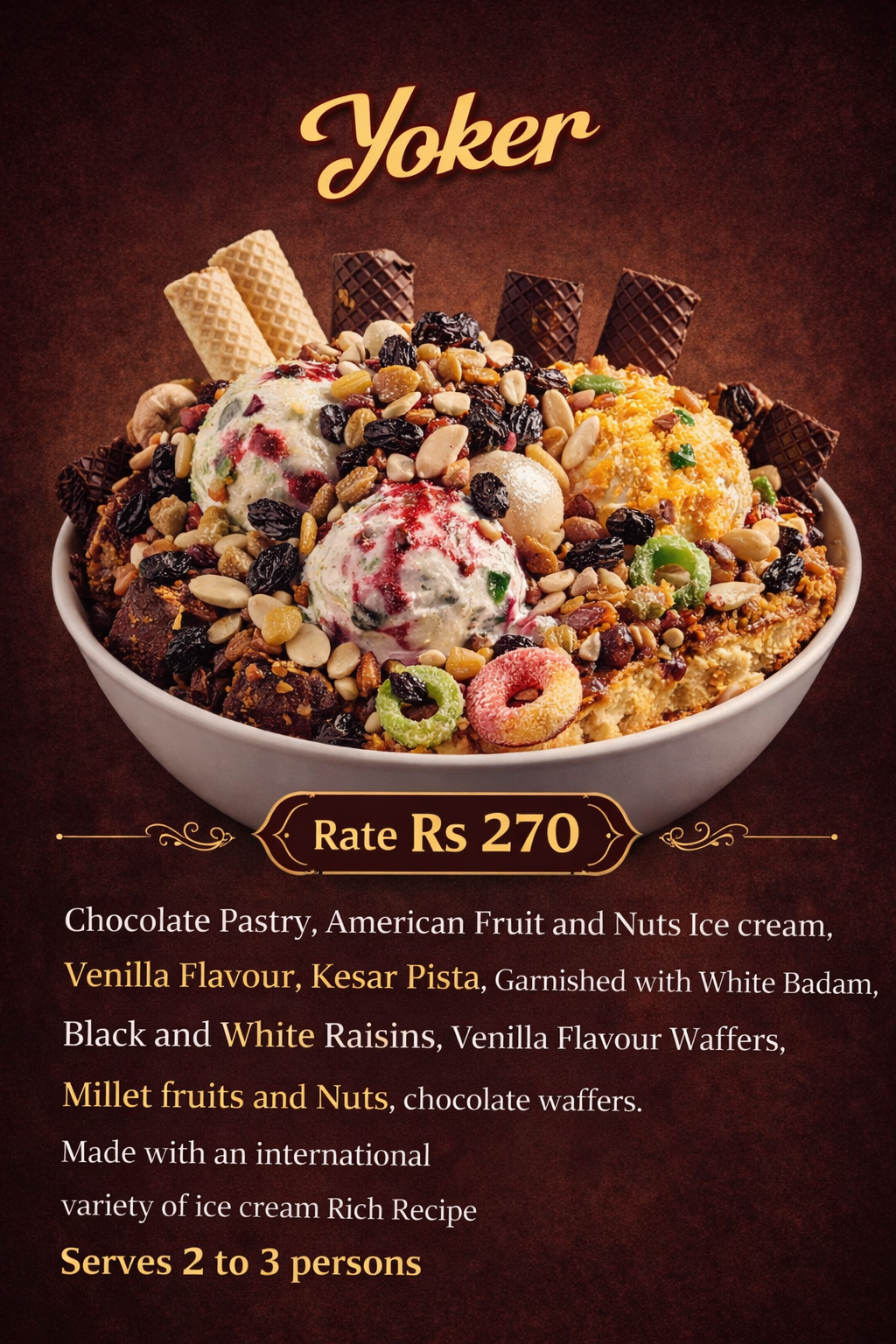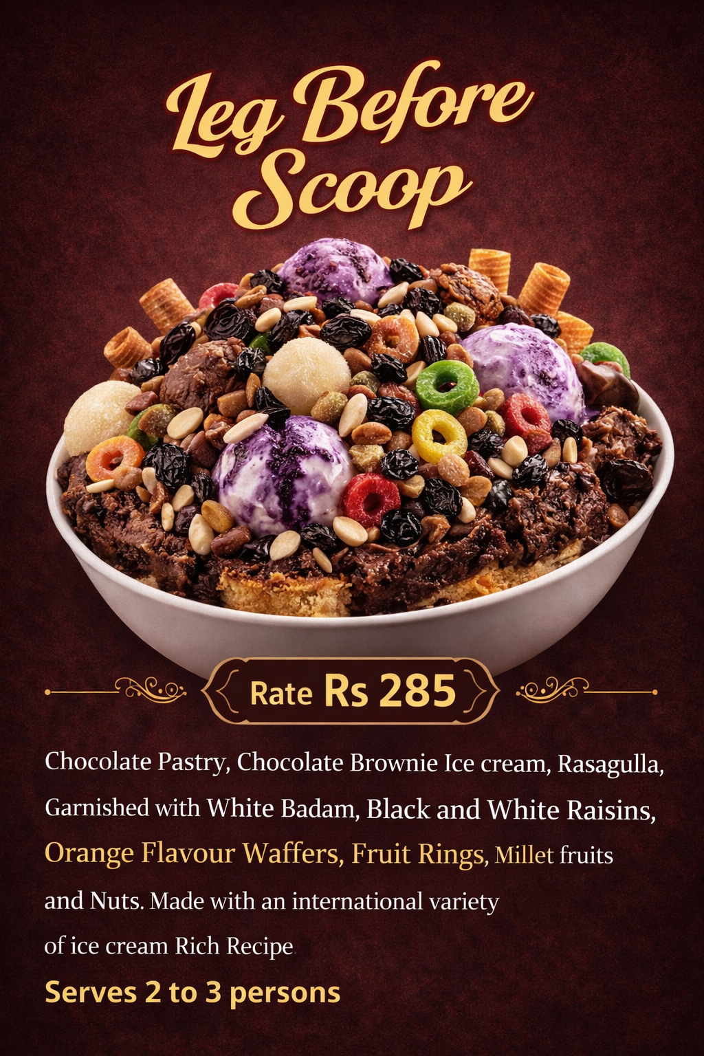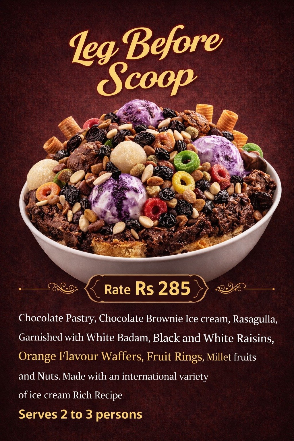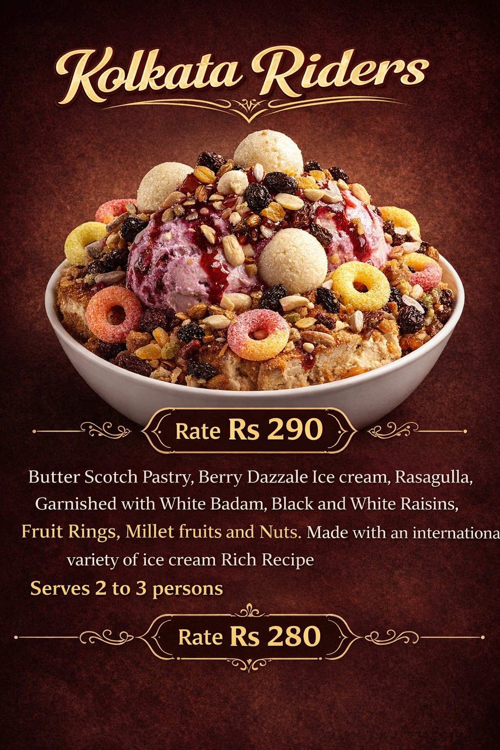 We offer a wide range of freshly prepared food and beverage items to satisfy every taste. Our menu includes delicious desserts, creamy ice creams, refreshing beverages, and a variety of snacks made with quality ingredients. Customers can enjoy tasty sandwiches, crispy French fries, and perfectly cooked veg nuggets, prepared with care and hygiene. We focus on providing flavorful food, quick service, and a pleasant experience for all customers. Our aim is to serve fresh, tasty, and affordable food items suitable for all age groups.